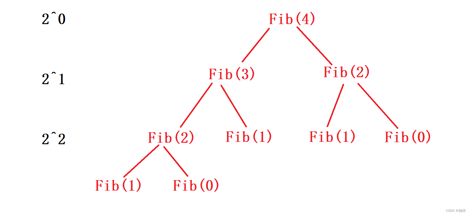 则递归的次数为Fib(N) = 2^0 + 2^1 + ……+ 2^(N-1)