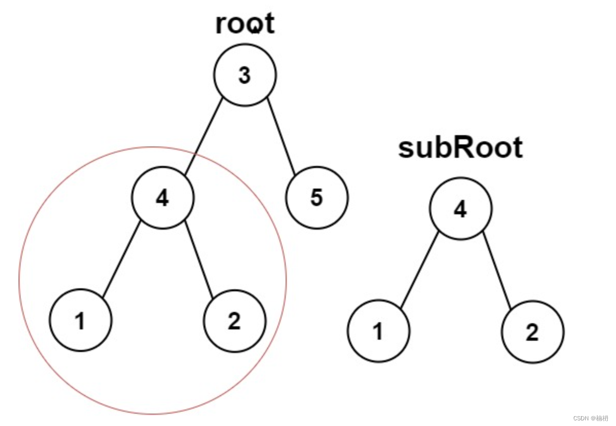 输入:root = [3, 4, 5, 1, 2],subRoot = [4, 1, 2]
