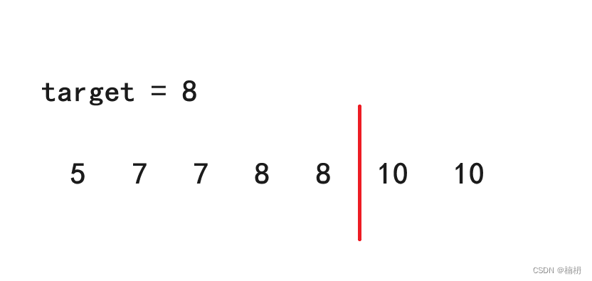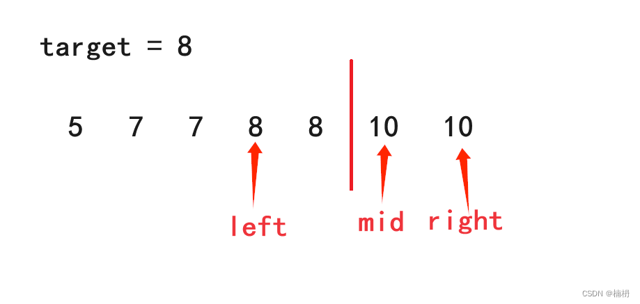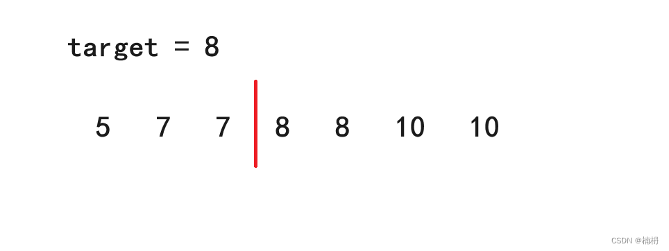 其中,左边区间内元素小于等于target,右边区间元素大于target