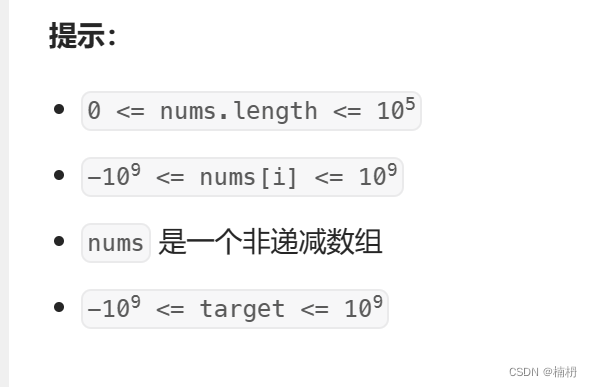 给你一个按照非递减顺序排列的整数数组 nums,和一个目标值 target。请你找出给定目标值在数组中的开始位置和结束位置。