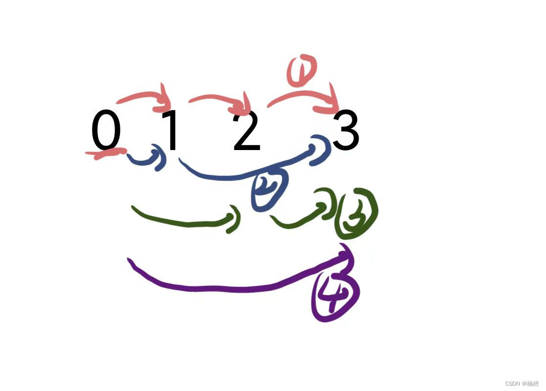 同理,从i-2位置到达i位置有dp[i-2]种上楼方式,从i-3位置到达i位置有dp[i-3]种上楼方式