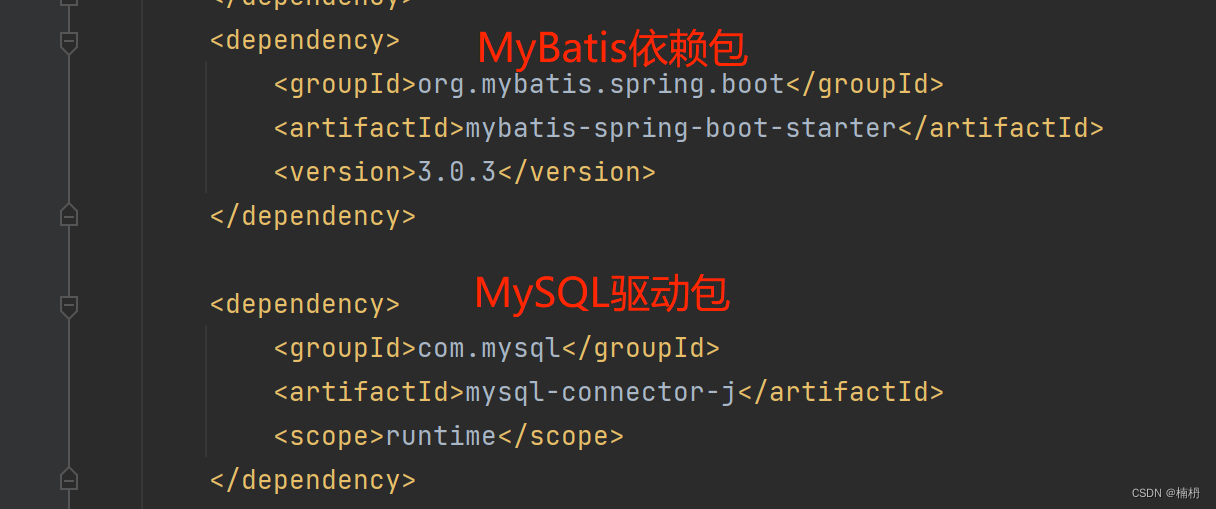 MyBatis是持久层框架,是帮助我们更简单地操作和读取数据库的工具,其具体数据存储和数据操作还是在MySQL中进行的,因此,需要添加MySQL驱动