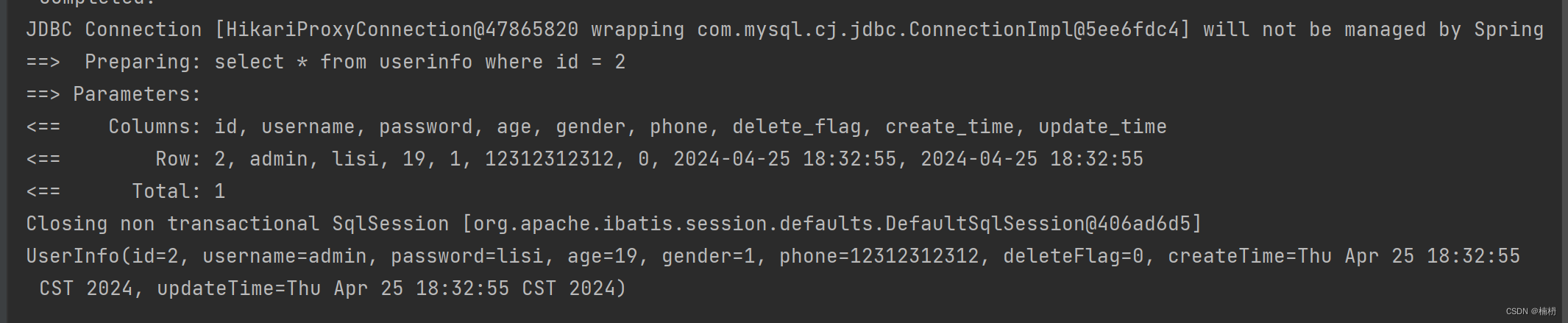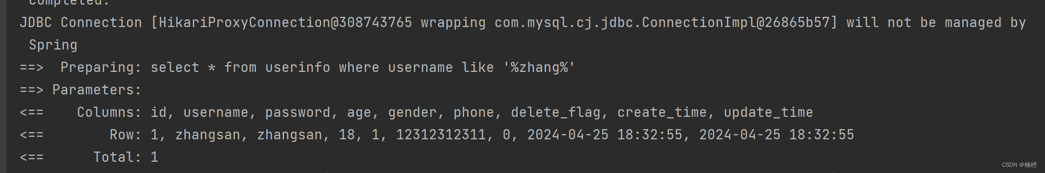 System.out.println(userInfoMapper.selectByUsername2("zhangsan"));