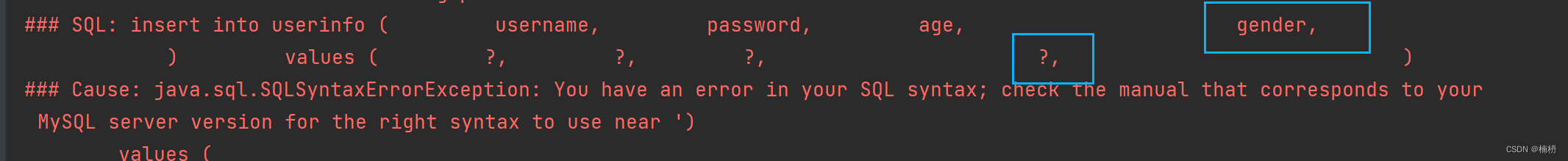 由于 phone 为空,此时 gender, 后无字段, values 中 , 后也无值,因此程序报错