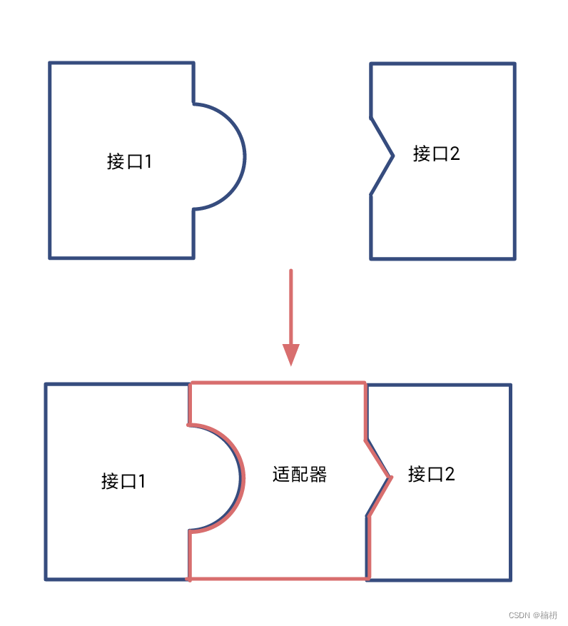适配器模式:是一种结构型设计模式,用于将一个类的接口转换成客户端所期望的另一个接口。这种模式通常用于解决接口不兼容的情况,使得原本由于接口不匹配而无法在一起工作的类可以一起工作,总而言之,就是将两个不兼容的接口通过一定的方式使之兼容