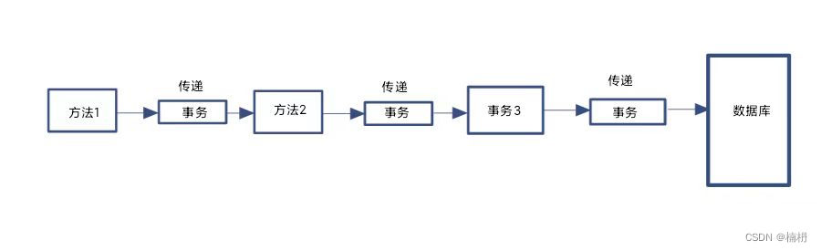 @Transactional 注解支持事务传播的设置,通过 propagation 属性来指定传播行为