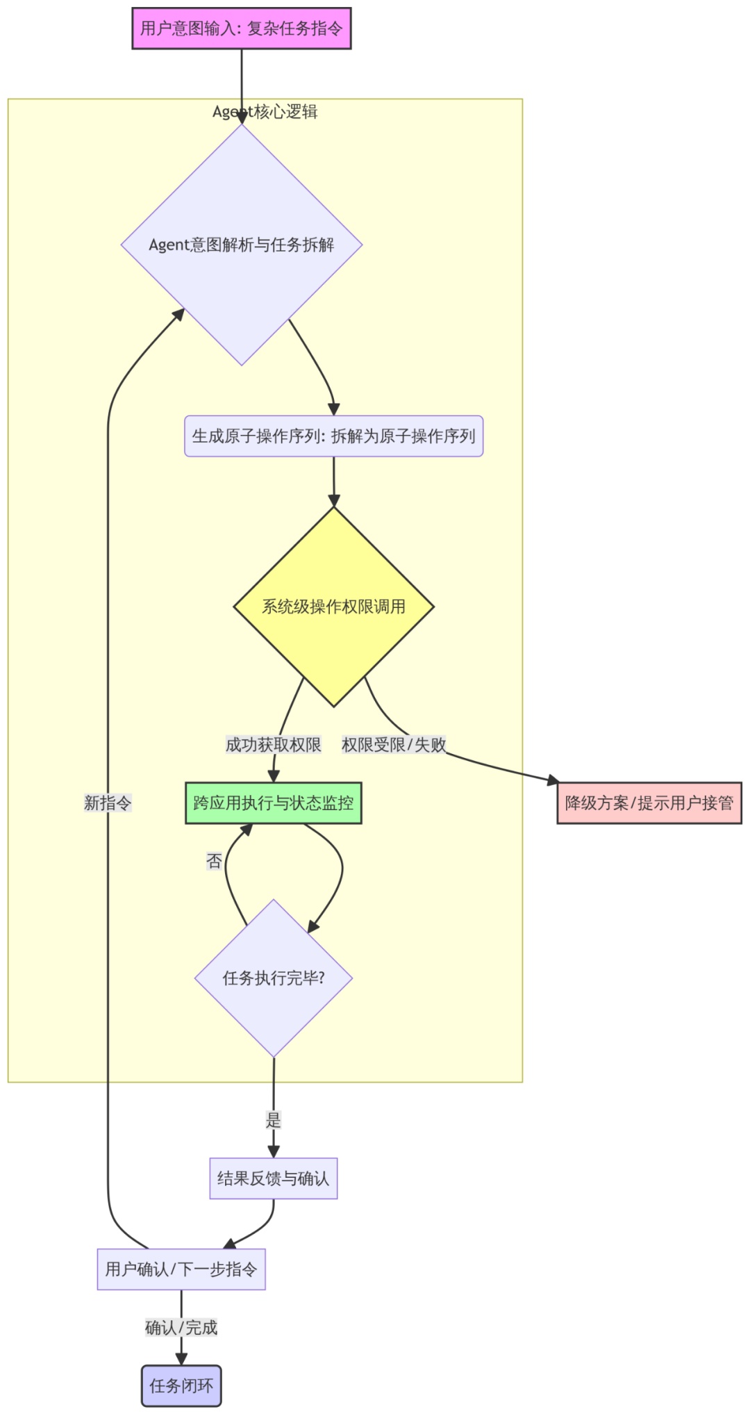 为了更好地理解系统级Agent的工作机制,我们拆解了其任务执行流程。这不仅是技术实现路径,更是AI PM设计Agent产品时的核心逻辑框架。