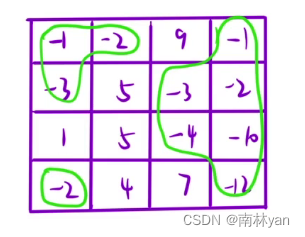 从某个位置开始广度搜索,例如从右上角-1位置开始,-1位置上下左右搜索到-2位置,再从-2位置上下左右搜索到-3和-10位置,再分别从-3和-10位置上下左右搜索到-4和-10位置,再从-4和-10位置上下左右搜索到-12位置