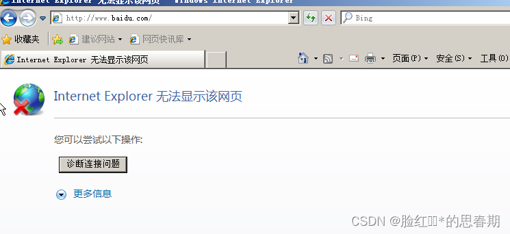 再更新一下DC的策略即可,可以看到我们无法访问百度了。因为我们封杀了tcp嘛,访问百度的流量出不去。可能有人会问访问百度不是走http协议的吗,为啥封杀tcp也行。这是因为http在OSI模型中是第七层应用层,而tcp是在第四层传输层,http是基于tcp的嘛。你这样想爸爸都没有了,哪来的儿子。