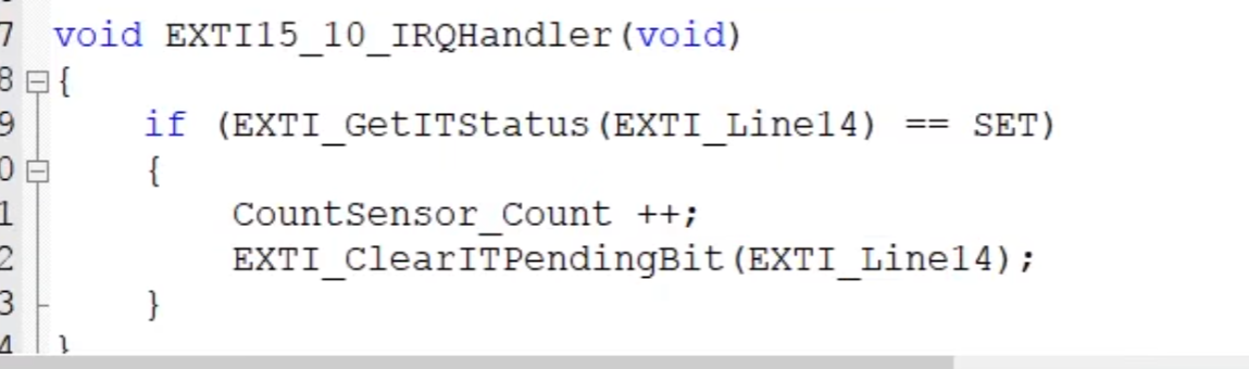 第一个通道:因为我们选择的是14通道EXTI进来的,触发的NVIC中断,每个通道对应一个中断相应函数