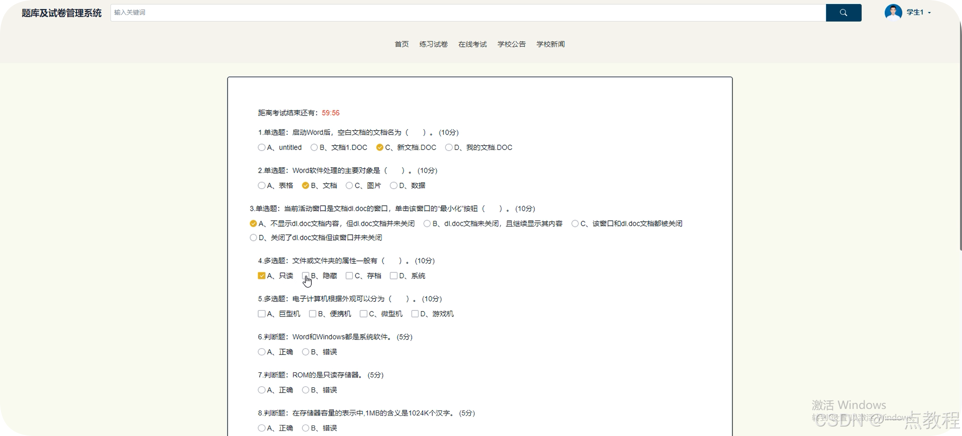 - 在线考试:提供了在线考试的功能,学生可以根据自己的学习进度进行模拟考试,从而更好地评估自己的学习水平。