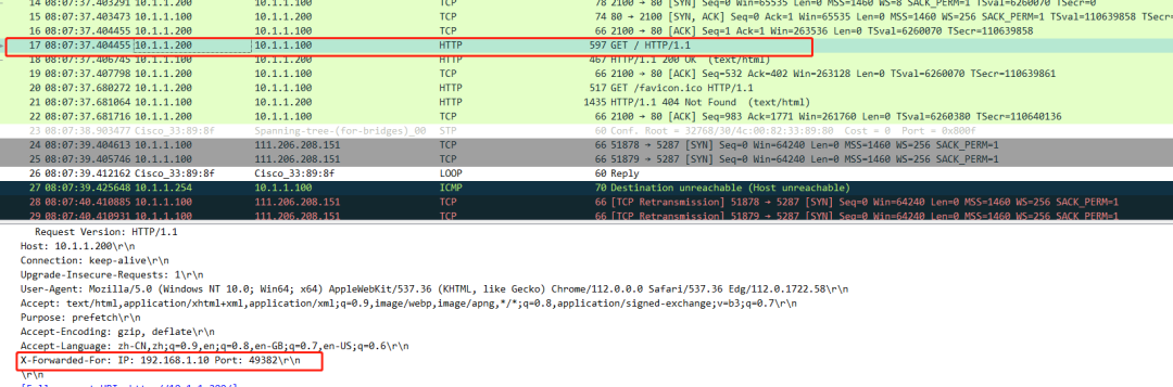 X-fordwarded-for简称XFF,是在客户端在访问服务器的过程中经过负载均衡器,被用来获取最初发起请求的客户端IP地址。当在数据流从客户端 流向服务器的过程中被拦截的情况下,服务端的访问日志只能记录负载均衡器的IP地址,如果想要获取最初发起请求客户端地址的话,那么X-Forwarded-For就派上了用场。