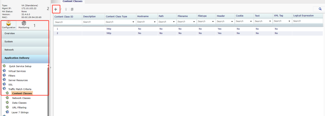 1)进入Configuration>Application Delivery>Traffic Match Crteria>Content Classes;