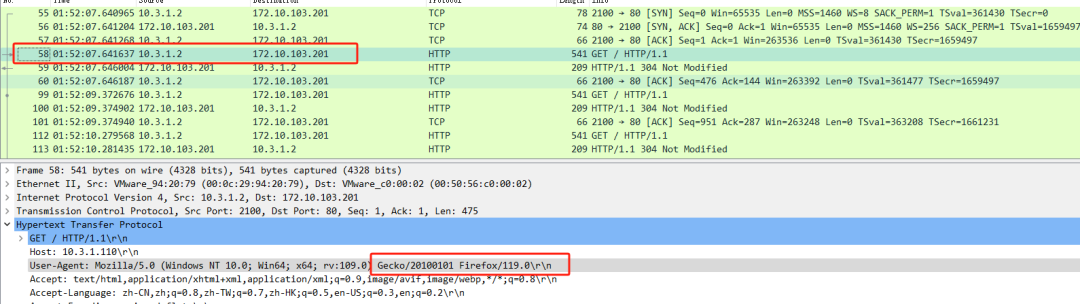 172.10.103.201 HTTP数据包内核Gecko,字段Firefox