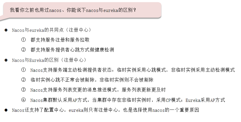 我看你之前也用过nacos,你能说下nacos与eureka的区别?