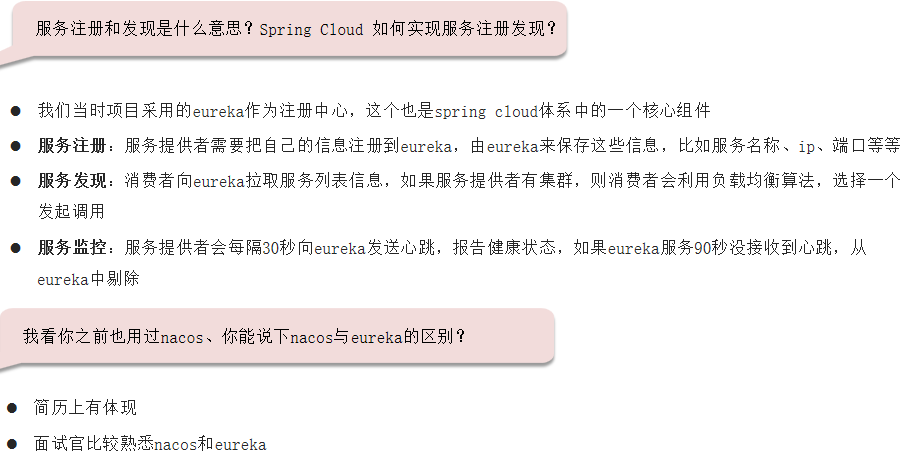 - 服务注册:服务提供者将自己的信息(如服务名称、IP、端口等)注册到Eureka(nacos)。