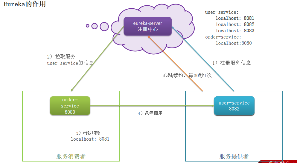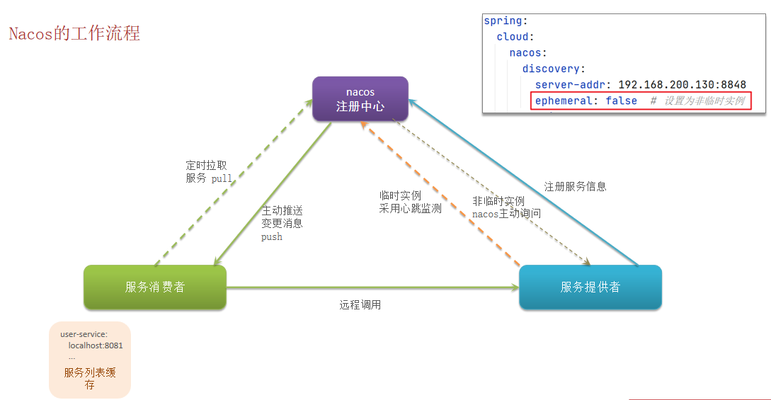 - 服务发现:消费者从Eureka(nacos)获取服务列表信息,并利用负载均衡算法选择一个服务进行调用。