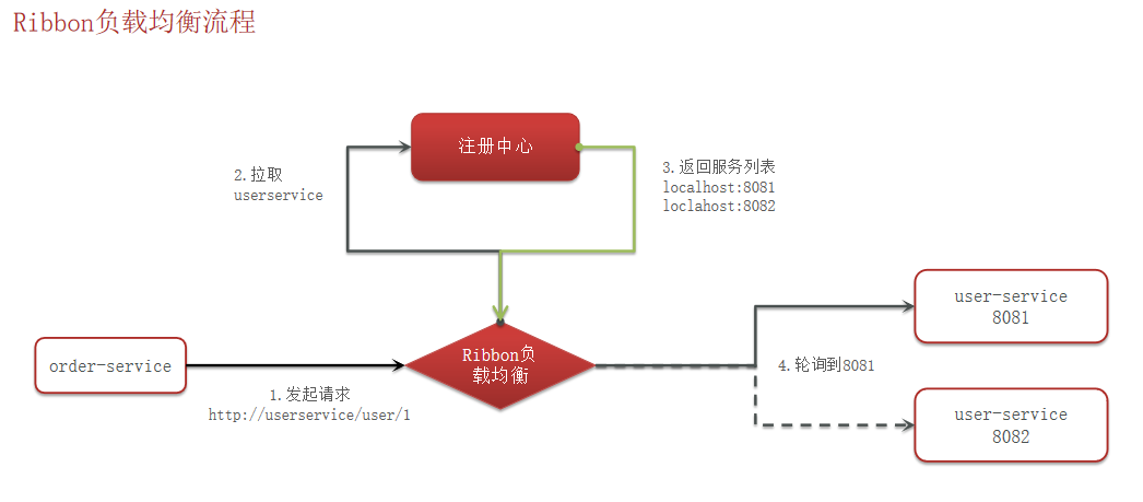当发起远程调用时,Ribbon首先从注册中心获取服务地址列表,然后根据预设的路由策略选择一个服务实例进行调用,常用的策略是轮询。