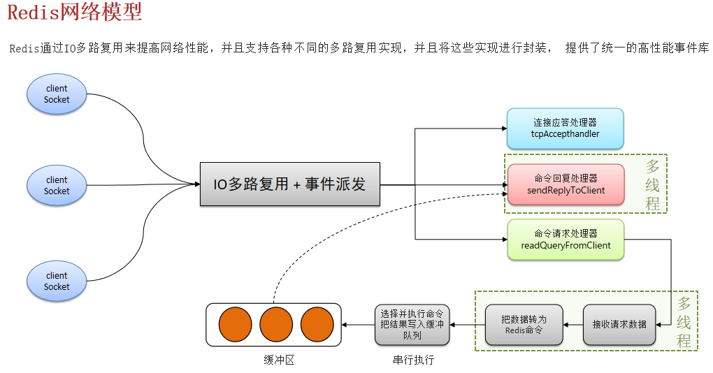 其中Redis的网络模型就是使用I/O多路复用结合事件的处理器来应对多个Socket请求,比如,提供了连接应答处理器、命令回复处理器,命令请求处理器;