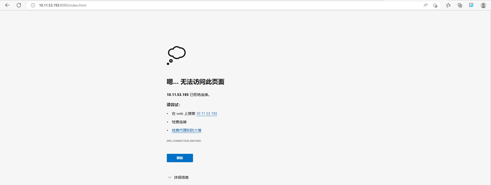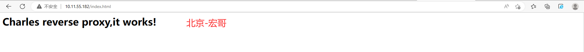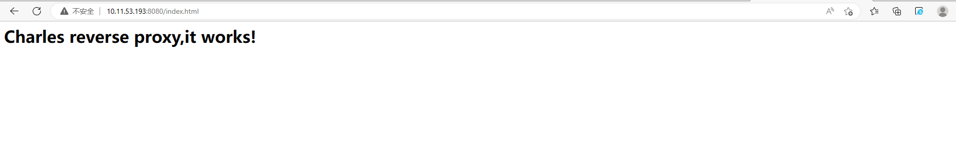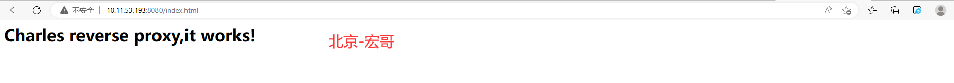 7.在任意一台计算机或者移动端上,通过http://计算机B的IP:反向代理中设置的Loal Port端口/inde.html,可以访问到HTML页面服务。本例中通过在浏览器或者移动端的服务器设置上输入http://10.11.53.193:8080/index.html访问,如下图所示: