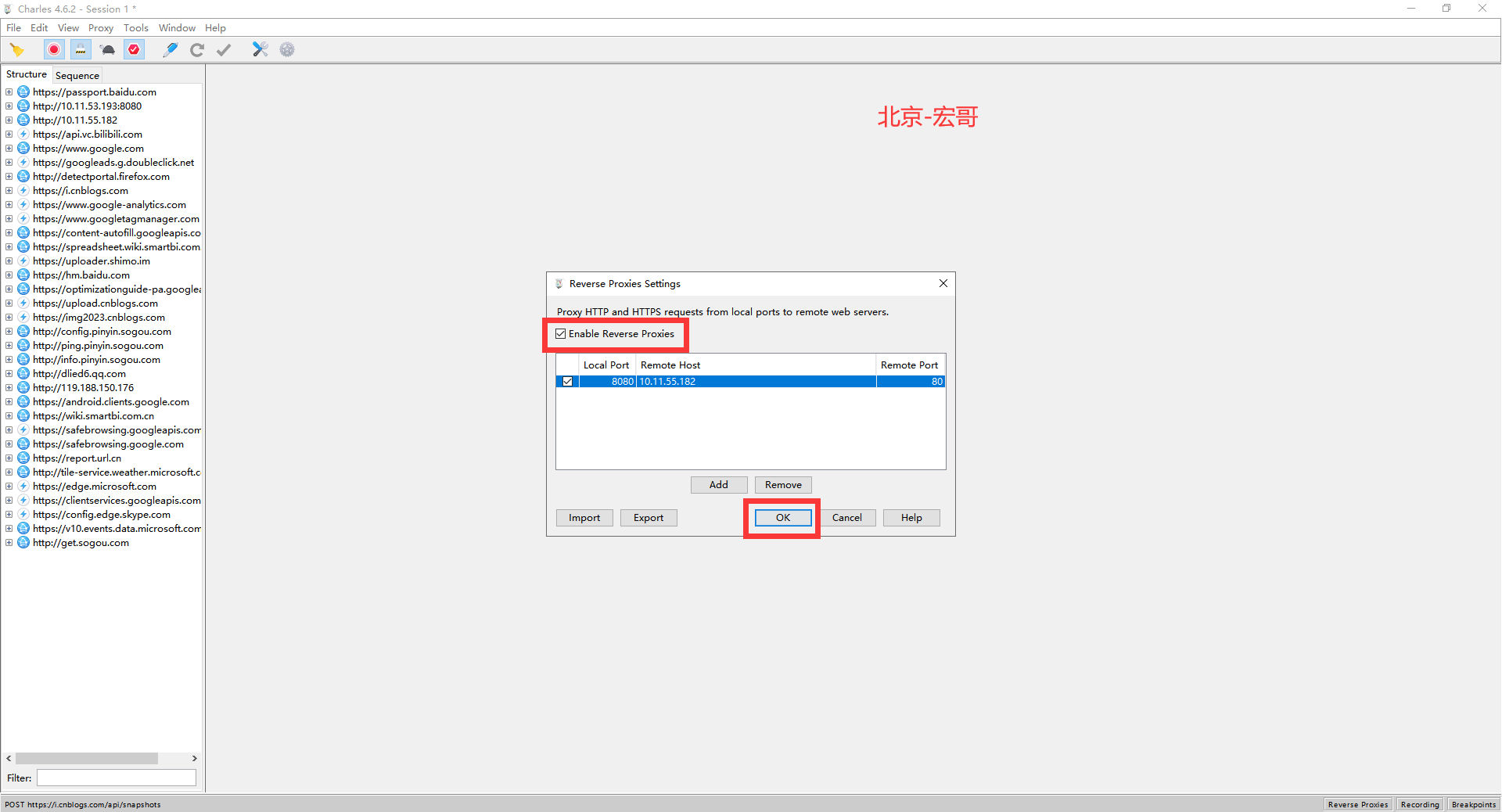 点击OK保存反向代理设置,如下图所示: