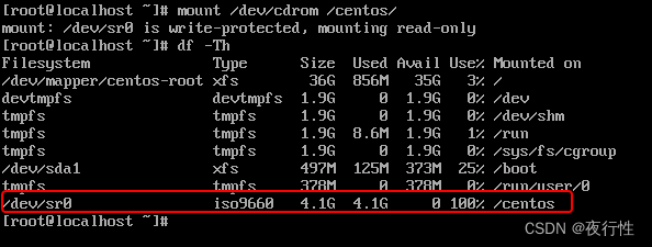 再次输入查看命令可以发现挂载文件/centos没有了,解挂载成功!