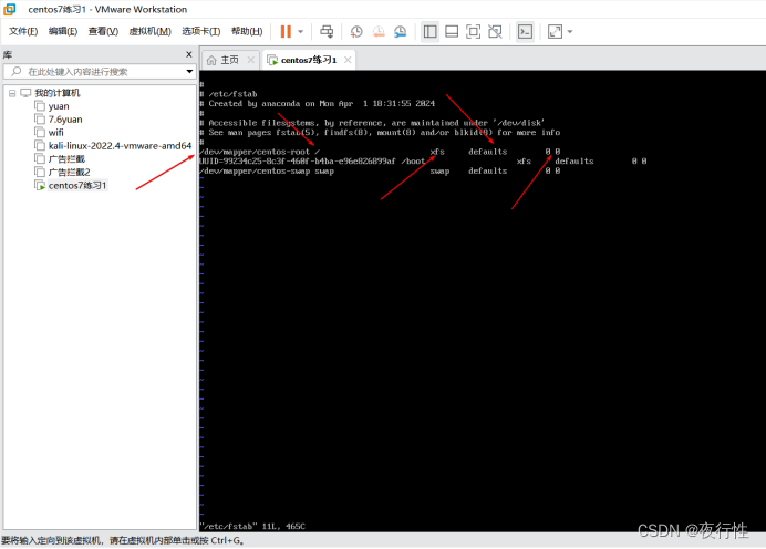 永久挂载的配置文件在 /ect/fstab,详解如下: