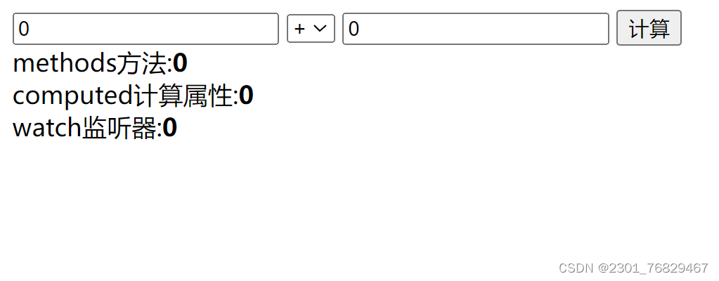 v-model绑定input框的值,绑定input键盘按下和鼠标点击时触发自定义方法getResult,该方法用来计算表达式的值。使用方法和计算属性 computed:定义一个计算属性,默认get方法获取值。监听器:监听属性watch,当被监视的属性变化时,自动调用计算结果。