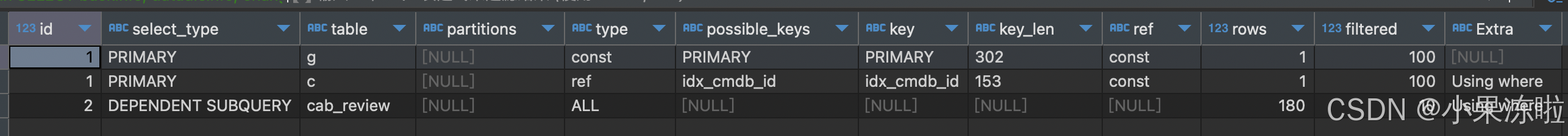 id的值越大,表示该SELECT子句或操作的优先级越高,越先被执行- 如果