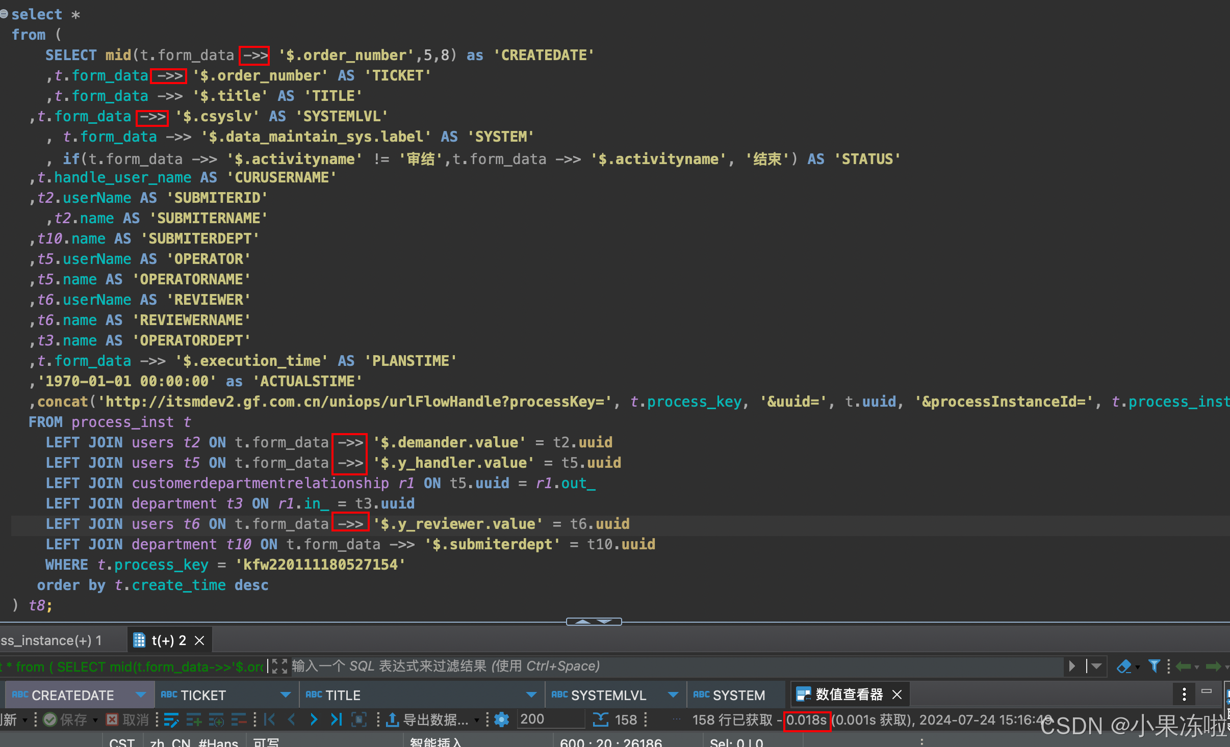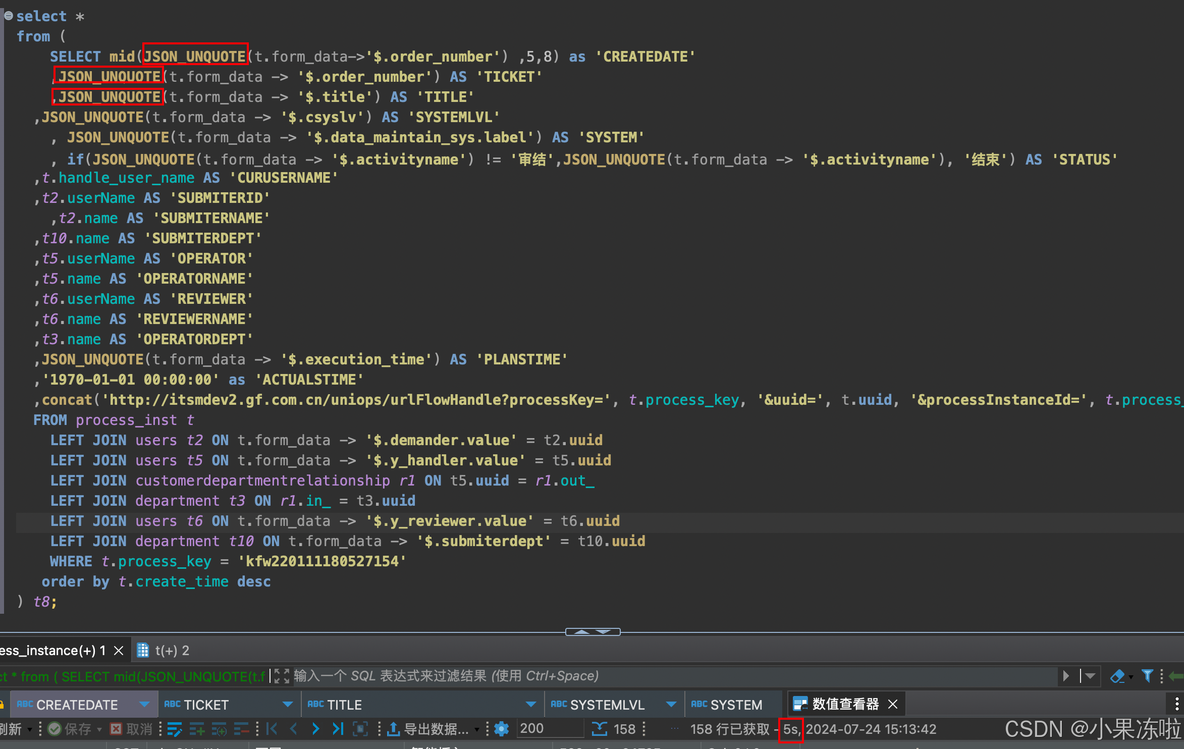 SQL使用大量的 JSON_UNQUOTE()函数配合 -> 符号取值,执行效率是5s左右