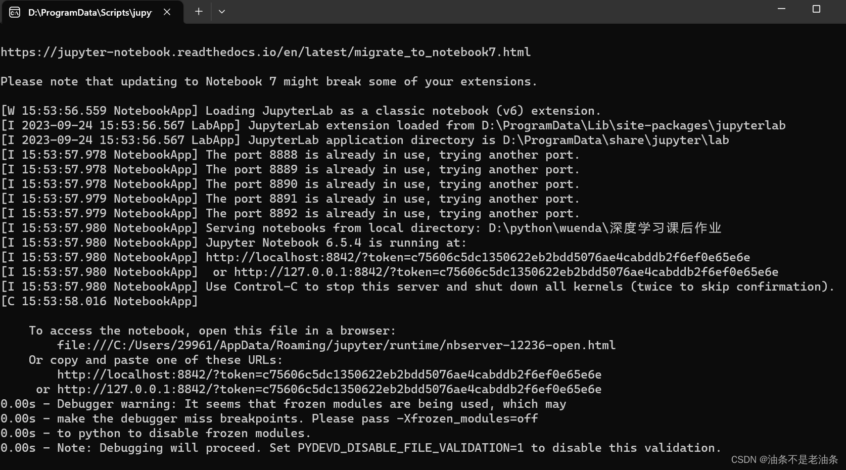 今天突然打不开jupyter notebook,停留在这里就不动了