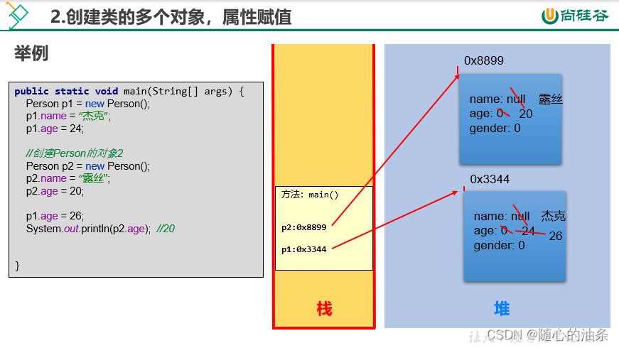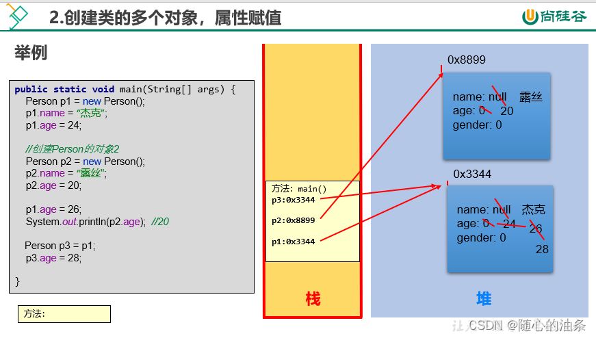 - 创建类的一个对象;创建类的多个对象;方法的调用的内存解析