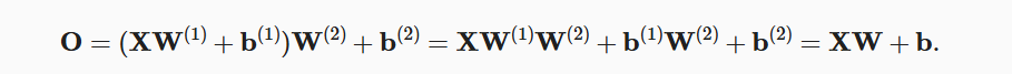 多加的几层,完全可以用一层来实现。如下图,H是隐藏层计算,O是输出层计算。