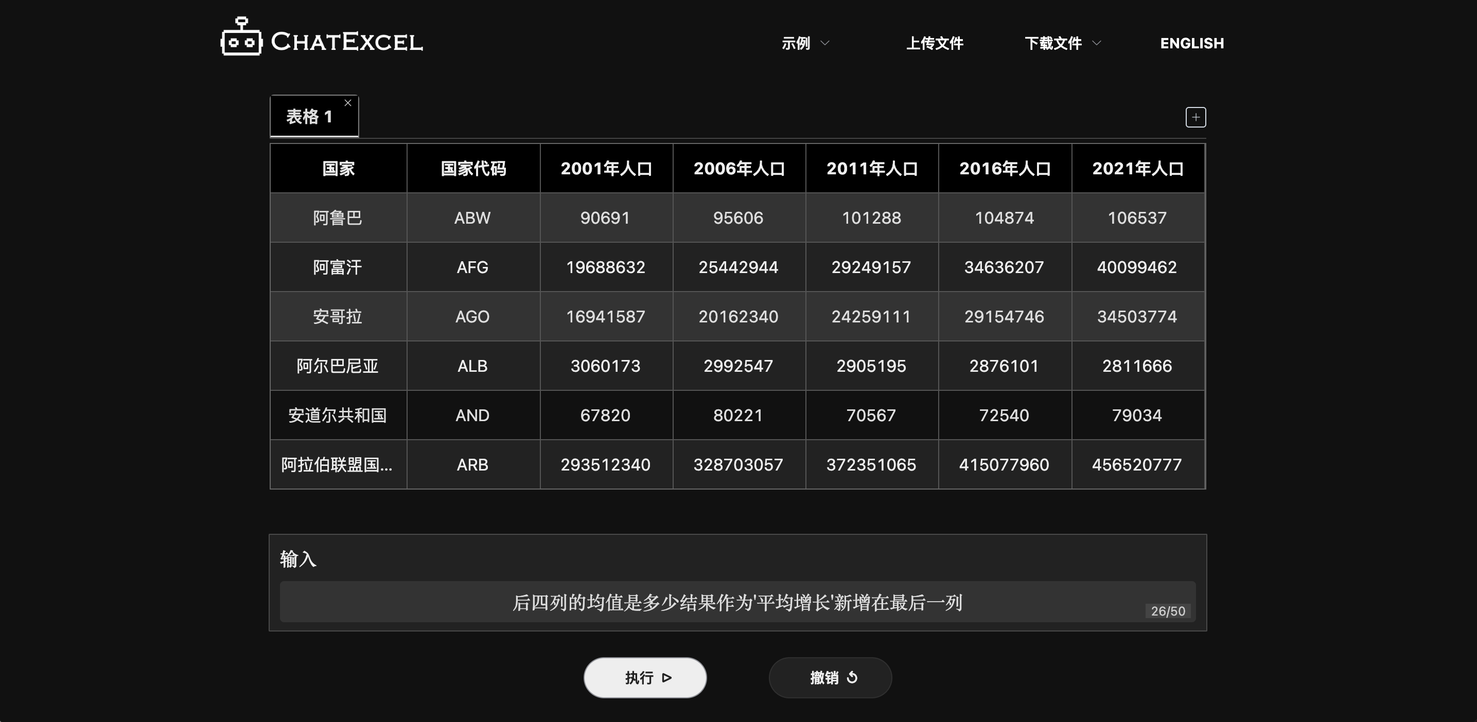 比如这张表的数据是全球各国人口数量。