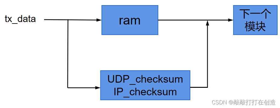 千兆通信中的发送链路(二)——IP和UDP校验计算 在上一篇文章中,我们已经完成了设计流程中的定时器模块和产生UDP基本帧结构模块的书写,本文我我们来完成checksum_ctrl模块,该模块里面包含了IP和UDP 的校验和计算,将计算出来的结果填充到以太网协议的IP头部检测计算方法和UDP首部的头部检测计算方法。设计框图如图1-1所示。
