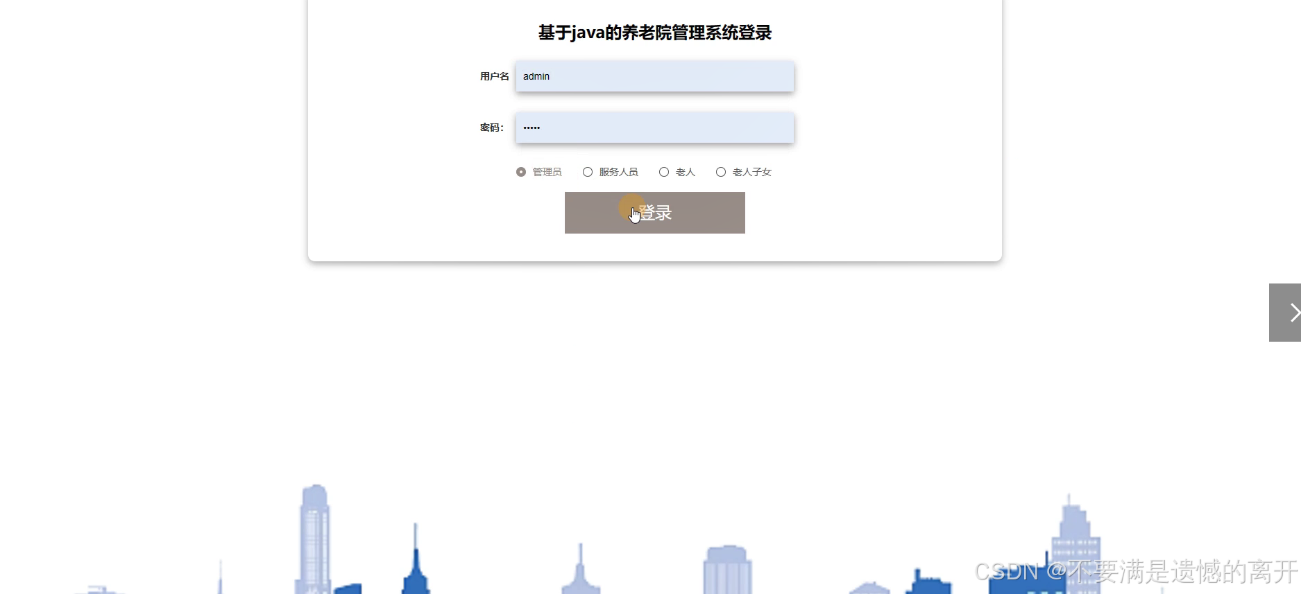 管理员登录,通过登录页面填写用户名、密码、角色,点击登录,如图5-5所示。