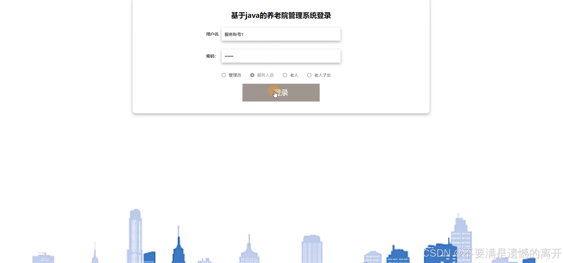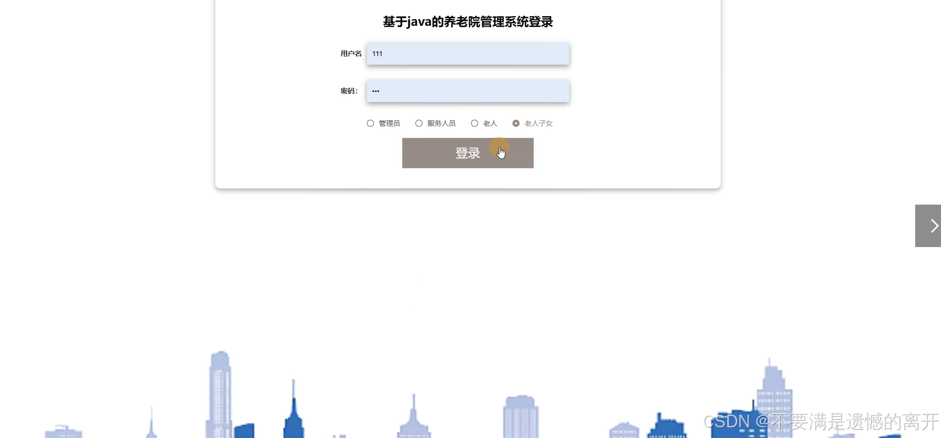 在系统首页点击中间的登录按钮,然后页面跳转到登录界面,后来输入信息完成后,单击登录操作,如图5-17所示: