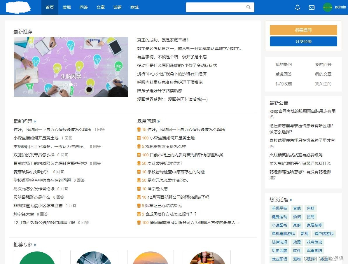 在信息化社会,知识共享和互动交流成为了人们日常生活和工作中不可或缺的一部分。在线问答系统作为连接知识提供者和需求者的桥梁,具有广阔的市场前景和巨大的社会价值。然而,传统的问答系统往往存在功能单一、定制性差、开发成本高等问题,难以满足用户多样化的需求。下面,罗峰给大家分享一款在线一问一答网页版源码系统,源码全开源可二次开发,带完整的安装代码包以及搭建教程。