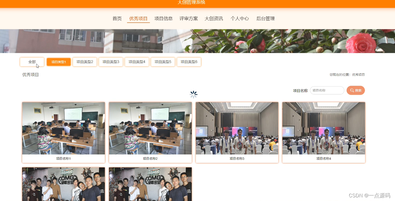 学生登录后可以在点击优秀项目进行查看优秀项目。界面如下图所示: