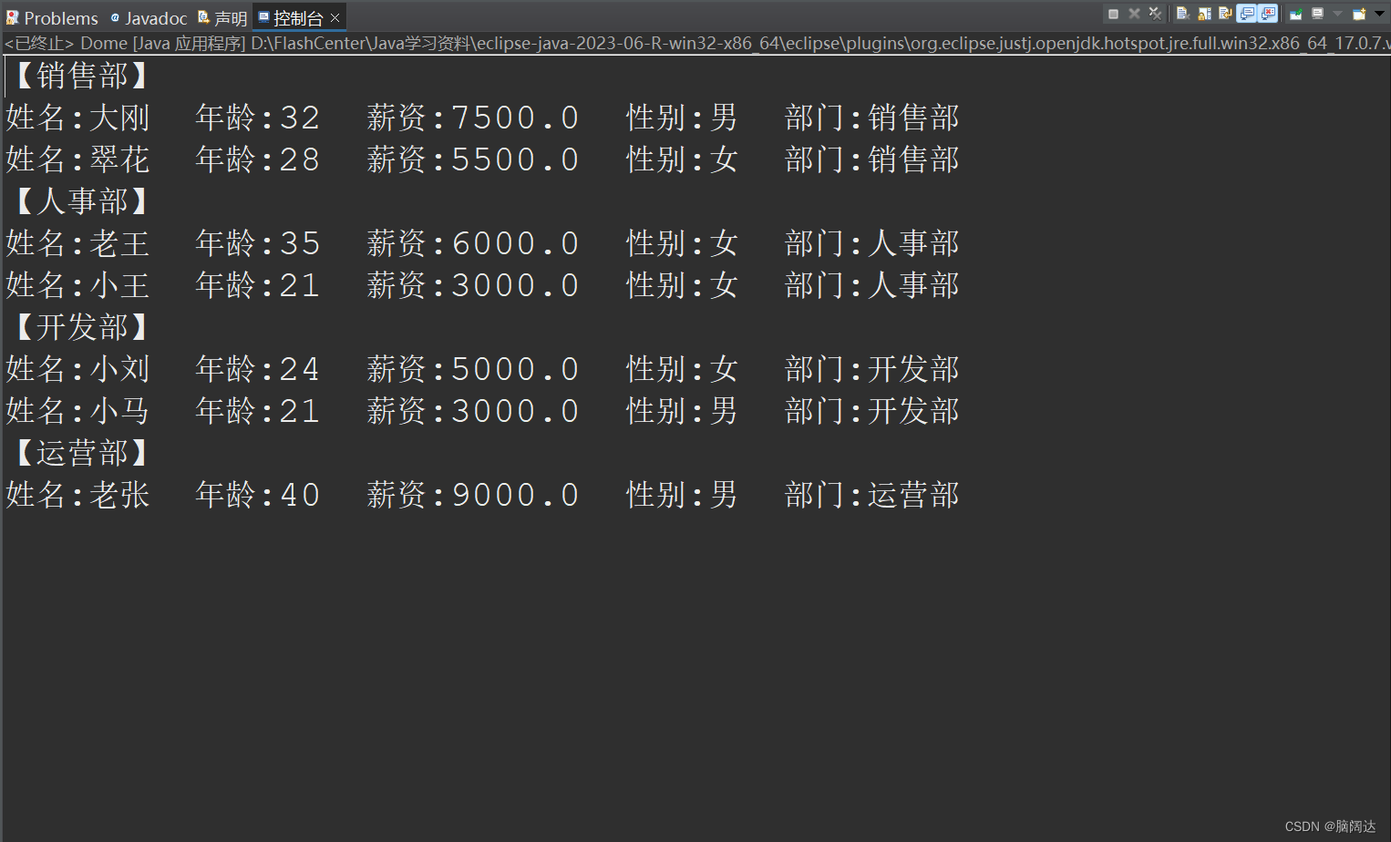 list.add(new Employee("翠花",28,5500,"女","销售部"));