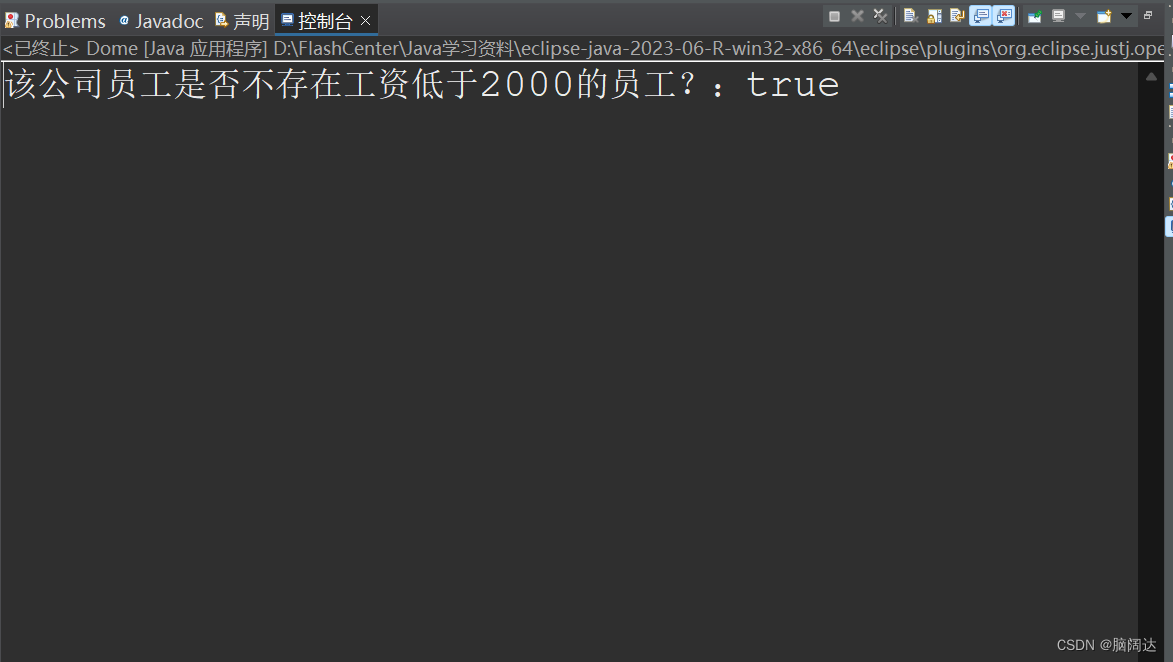 System.out.println("该公司员工是否不存在工资低于2000的员工?:"+result);