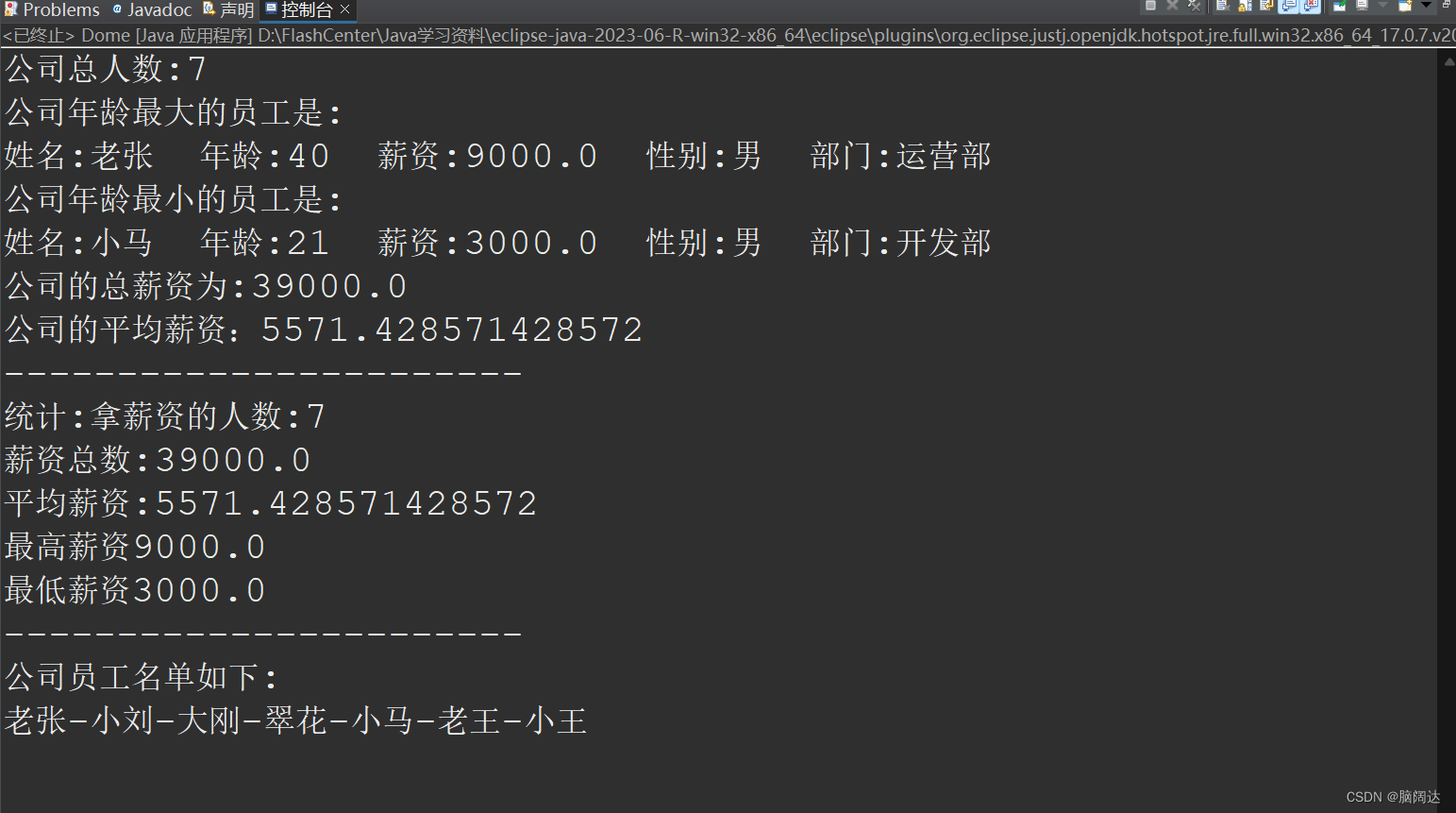System.out.println("薪资总数:"+s.getSum()+" ");