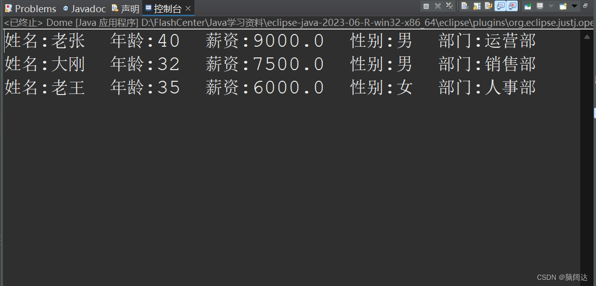 list.add(new Employee("老张",40,9000,"男","运营部"));