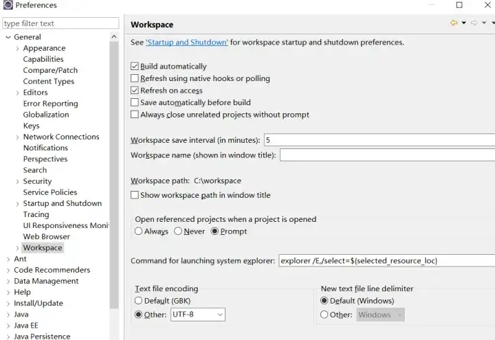 打开 Eclipse,首先在 windowspreferences 下选择编码格式为 UTF-8,如下图所示: