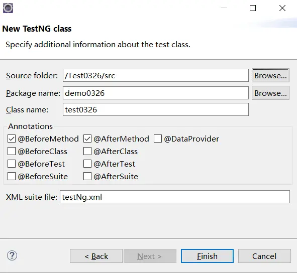 创建selenium脚本,选择TestNG class,点击Next
