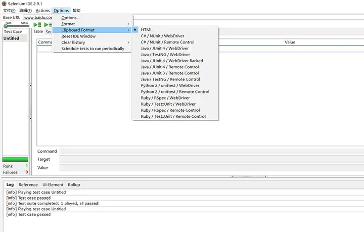 本文开始时提到了,Selenium IDE 还有一个重要的功能就是把脚本的转