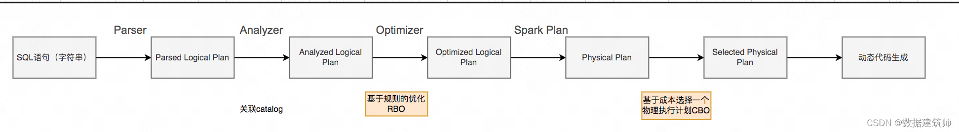 最后再以sparkSQL中的执行计划生成过程来说明查询优化器其作用的阶段
