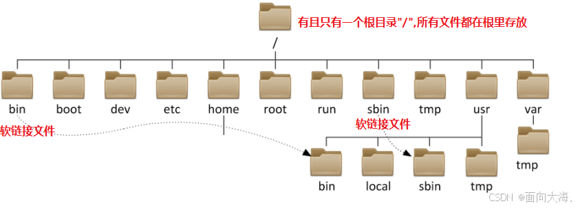 "/" 根目录是linux操作系统最顶级的目录,没有任何路径比它还要靠前。
