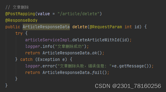 2.3、在后台管理控制类AdminController中添加处理文章删除发方法