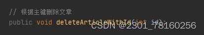 2.1、编写Service层接口方法:在文章业务接口IArtcleService添加文章删除方法deleteArticleWithld()